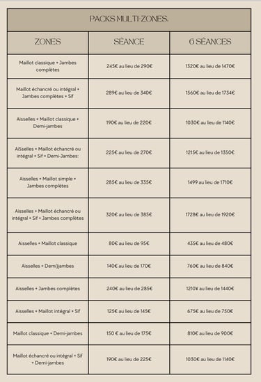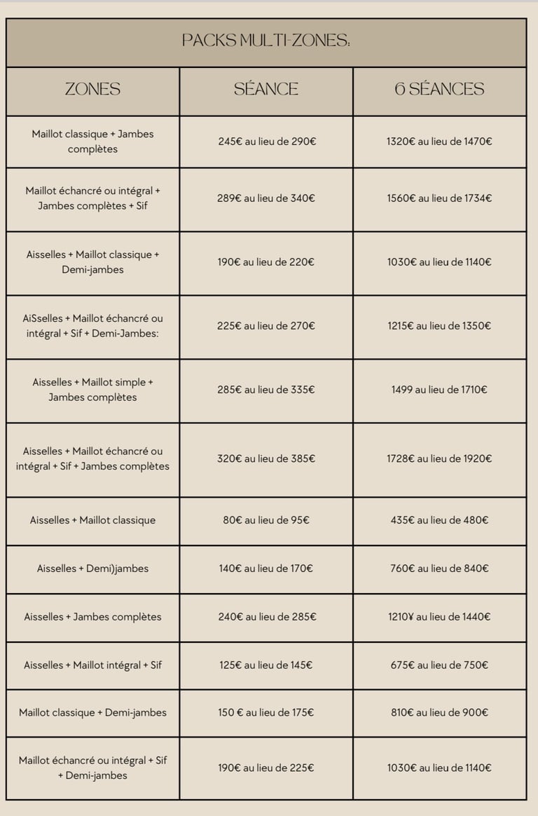 FORFAITS: Maillot classique + Demi-jambes + Aisselles: 34€